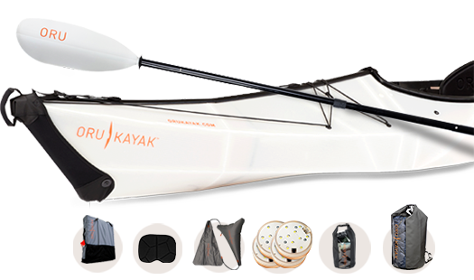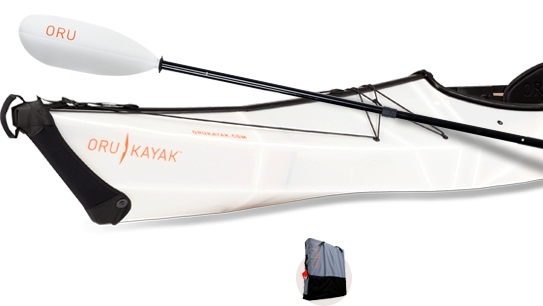 A 12'3" kayak that folds down to the size of a large suitcase. At 26 pounds, it's far lighter than a rotomolded kayak. It’s compact enough to store almost anywhere. With the Oru Pack, you can even check it on a plane or hike into the wilderness.