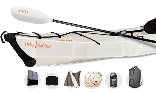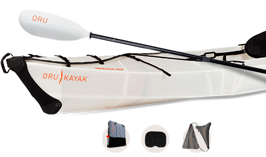 A 12'1" origami open-cockpit kayak that folds down to the size of couch cushion. At 25 pounds, it's half the weight of a traditional kayak. It’s compact enough to store in your trunk, closet, boat, or garage. With the Oru Pack, you can even check it on a plane or hike into remote waters.